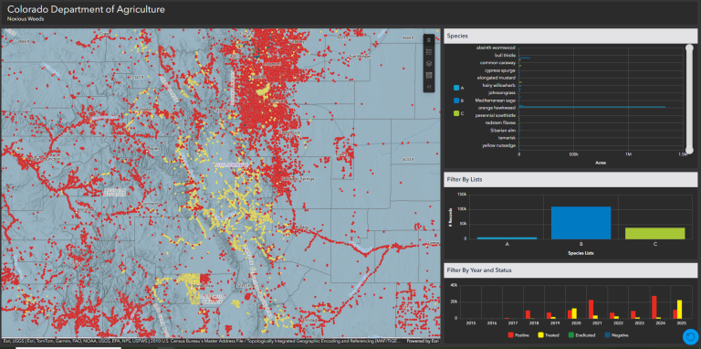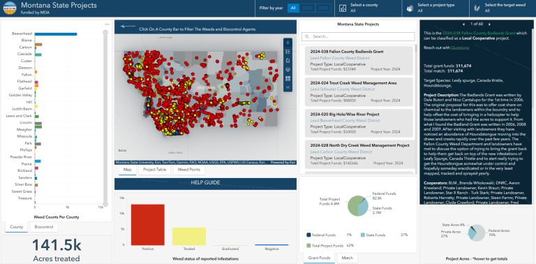 ArcGIS Online dashboards are tailored to state weed programs: connecting project data, funding, and partners into a single, public-facing view.